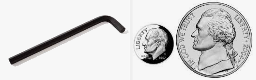 You will need to have three tools handy to help with this process: a 3 mm Allen wrench, a dime, and a nickel. Yes, we like to keep quilting easy, and adjusting your hopping foot height is one example of a very easy task.
